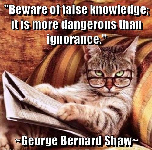 "Beware of false knowledge; it is more dangerous than ignorance." ~George Bernard Shaw~