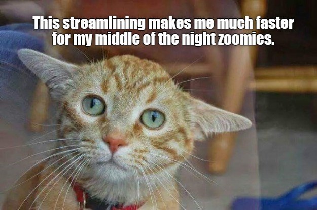 This streamlining makes me much faster for my middle of the night zoomies